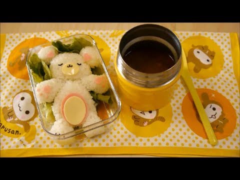 An easy Curry Soup recipe we made using a thermos for busy mornings when you want something warm for lunch. If you get a little creative with the ingredients, you can make it so the soup is perfect to eat at lunchtime. The onions become nice and soft and the curry roux fully dissolves as it gets shaken up in your bag on the way to work or school. To keep it warm, please wrap the bento in a wrapping cloth and place it a warm place. It should be warm but not scalding hot by the time you are ready to eat, so it's safe for small children as well. The soup curry itself is easy to make, so we also made a bear out of the rice. You can make him lounge around in the curry soup! We got the idea for cutting onions from hockie8612. Check her video here: Our facebook page⇒ Our twitter⇒ Our blog⇒ * Recipe* 1.Warm your food jar or thermos with hot water. 2.While your food jar is warming up, prepare the ingredients: Cut the sausages (20g) into small pieces. 3. Mince the onion (30g) and put it into a heat-resistant container. Add 1/2 tsp of vegetable oil and mix lightly. Microwave for 1 minute 30 seconds. 4. Drain the water from your thermos and add the onion, sausage, a single serving of curry roux, and the appropriate amount of hot water into the lid. 5. Prepare the rice. You can decorate the rice with ham or sliced cheese. If you're making a bear, we find that he's even cuter if you make him a little stylized. 0:00:12.000,0:00:14.000 Warm your food jar or thermos with hot water. 0:00:18.000,0:00:20.000 Cut the sausages (20g) into small pieces. 0:00:23.000,0:00:25.000 One block of curry roux. 0:00:28.000,0:00:29.000 The "chopstick method". 0:00:33.000,0:00:35.000 Mince the onion (30g) and put it into a heat-resistant container. 0:00:39.000,0:00:41.000 Add 1/2 tsp of vegetable oil and mix lightly. 0:00:42.000,0:00:44.000 Cover with polyethylene wrap. 0:00:46.000,0:00:48.000 Warm in the microwave for 1 minute 30 seconds. 0:00:51.000,0:00:52.000 Drain the hot water from the thermos. 0:00:54.000,0:01:02.000 Add the onion, sausage, a single serving of curry roux, and the appropriate amount of hot water into the lid. The curry soup is finished!